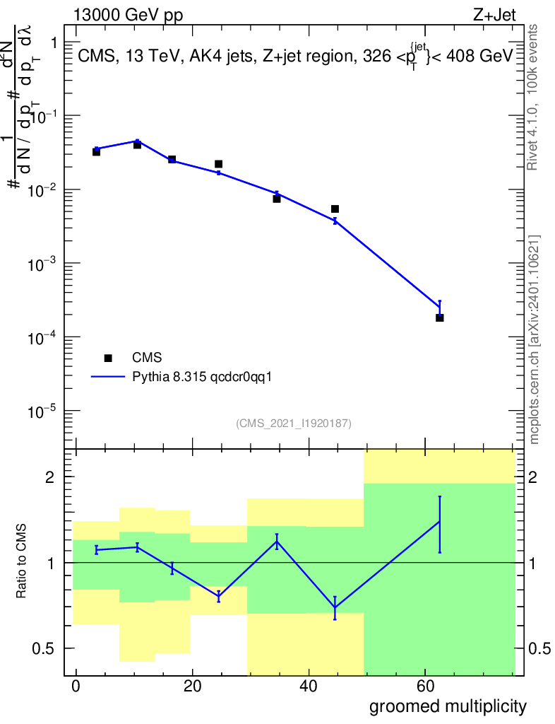 Lines: data, pythia8 8.315 qcdcr0qq1 |