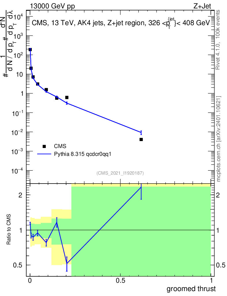 Lines: data, pythia8 8.315 qcdcr0qq1 |