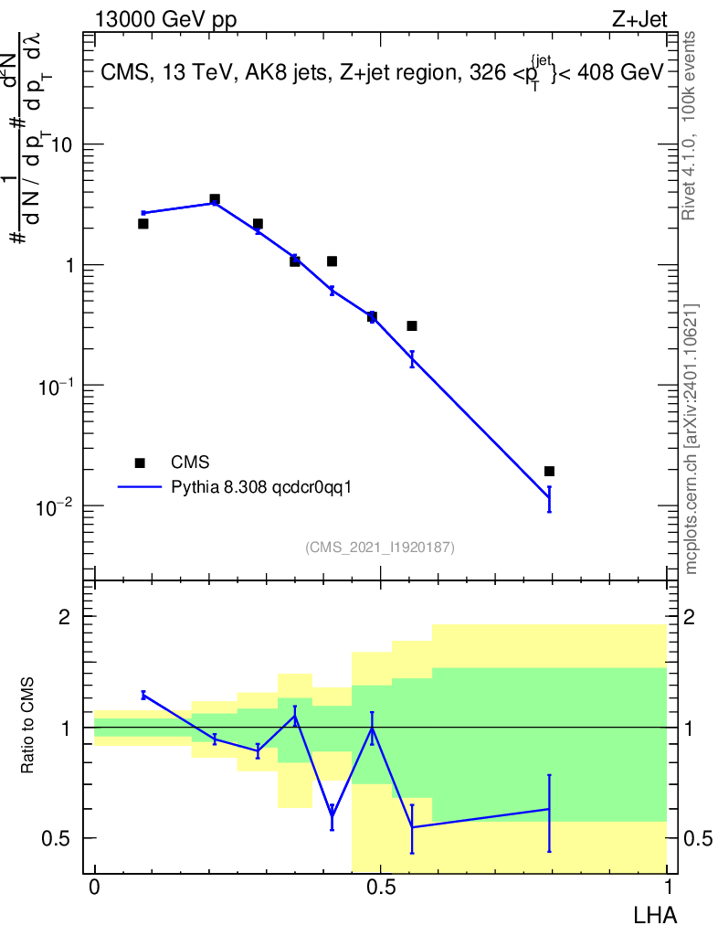 Lines: data, pythia8 8.308 qcdcr0qq1 |