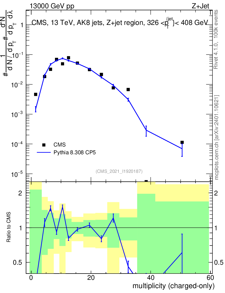 Lines: data, pythia8 8.308 CP5 |