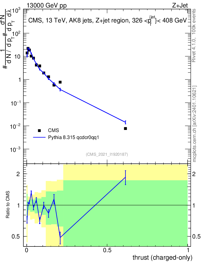 Lines: data, pythia8 8.315 qcdcr0qq1 |