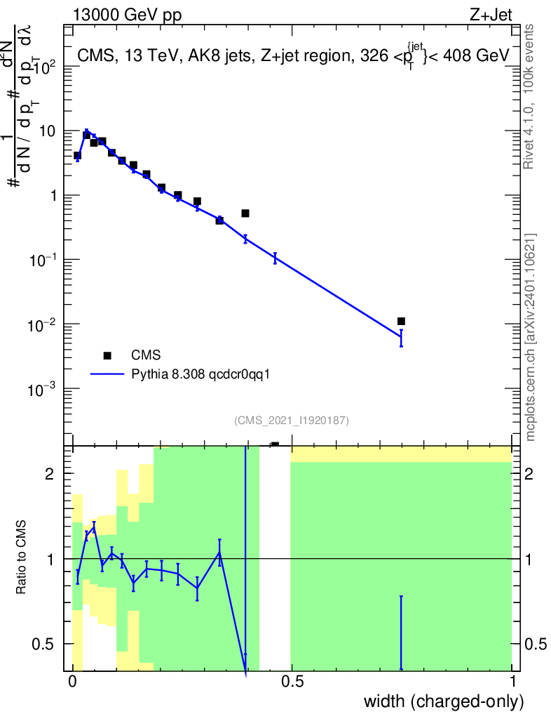 Lines: data, pythia8 8.308 qcdcr0qq1 |