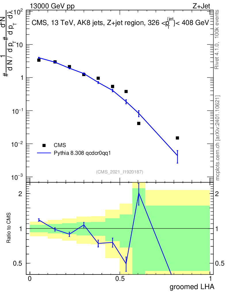 Lines: data, pythia8 8.308 qcdcr0qq1 |