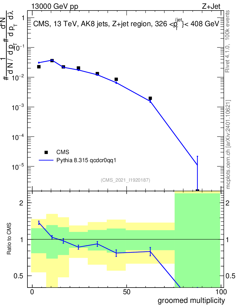 Lines: data, pythia8 8.315 qcdcr0qq1 |