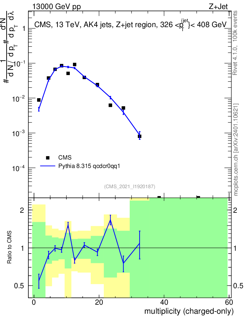 Lines: data, pythia8 8.315 qcdcr0qq1 |