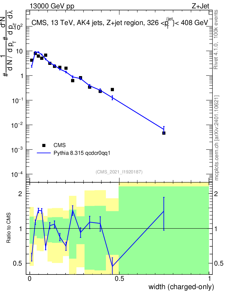 Lines: data, pythia8 8.315 qcdcr0qq1 |
