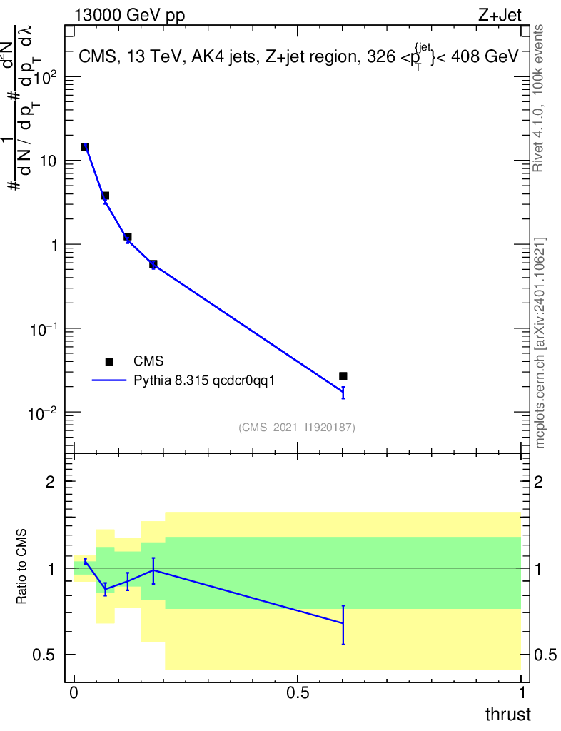 Lines: data, pythia8 8.315 qcdcr0qq1 |