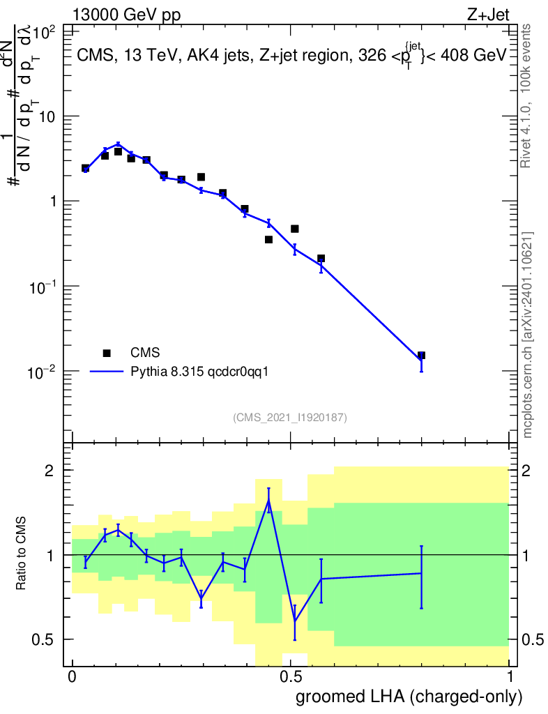 Lines: data, pythia8 8.315 qcdcr0qq1 |