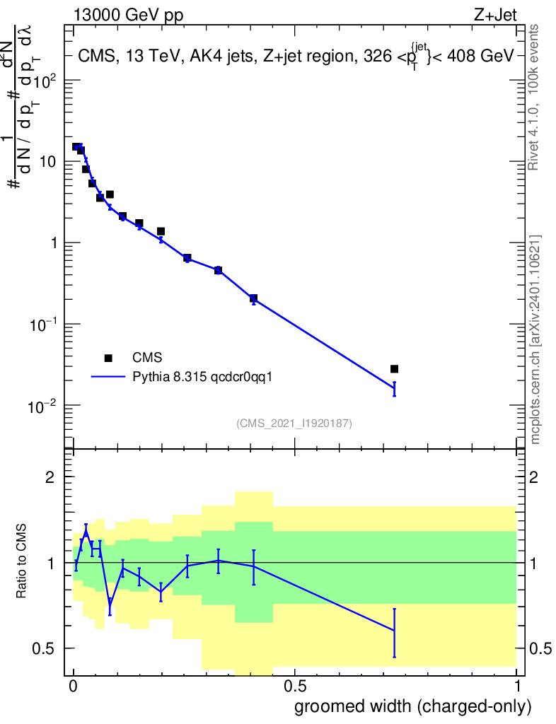 Lines: data, pythia8 8.315 qcdcr0qq1 |