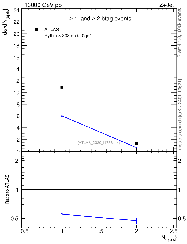 Lines: data, pythia8 8.308 qcdcr0qq1 |