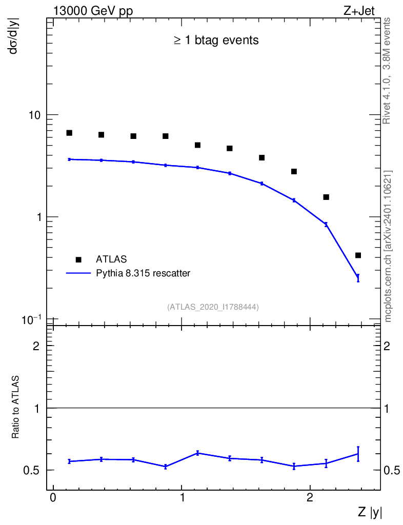 Lines: data, pythia8 8.315 rescatter |