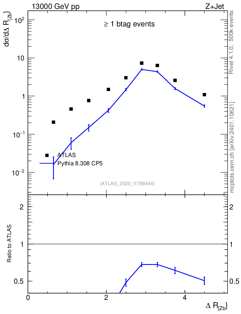 Observable: ΔR (jet, Z)