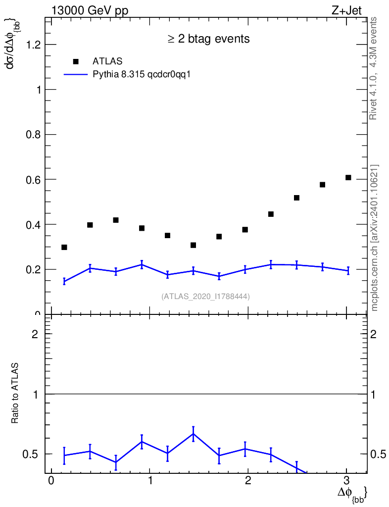 Lines: data, pythia8 8.315 qcdcr0qq1 |
