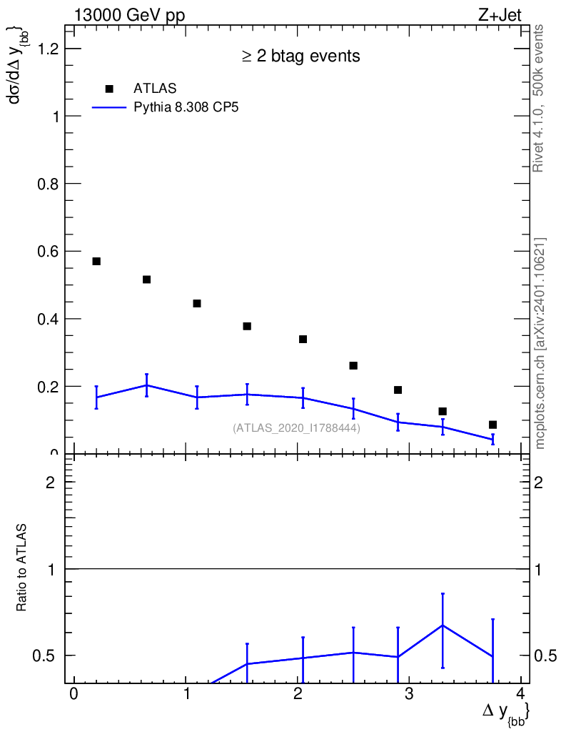 Plot of jj.dy in 13000 GeV pp collisions