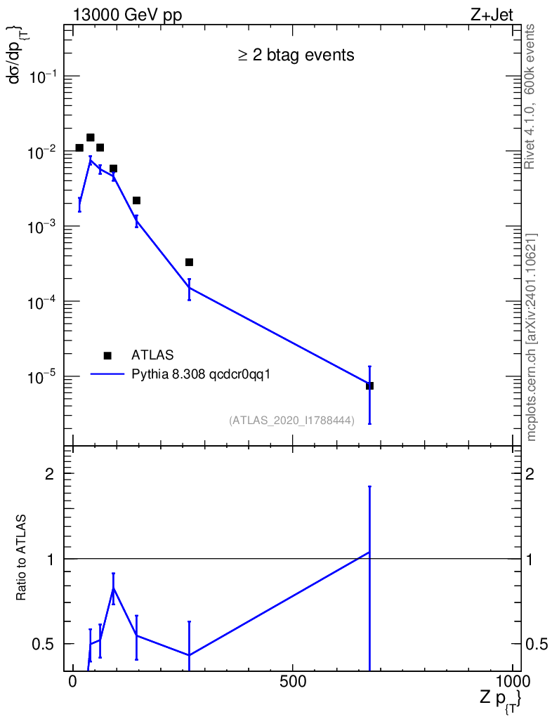 Lines: data, pythia8 8.308 qcdcr0qq1 |