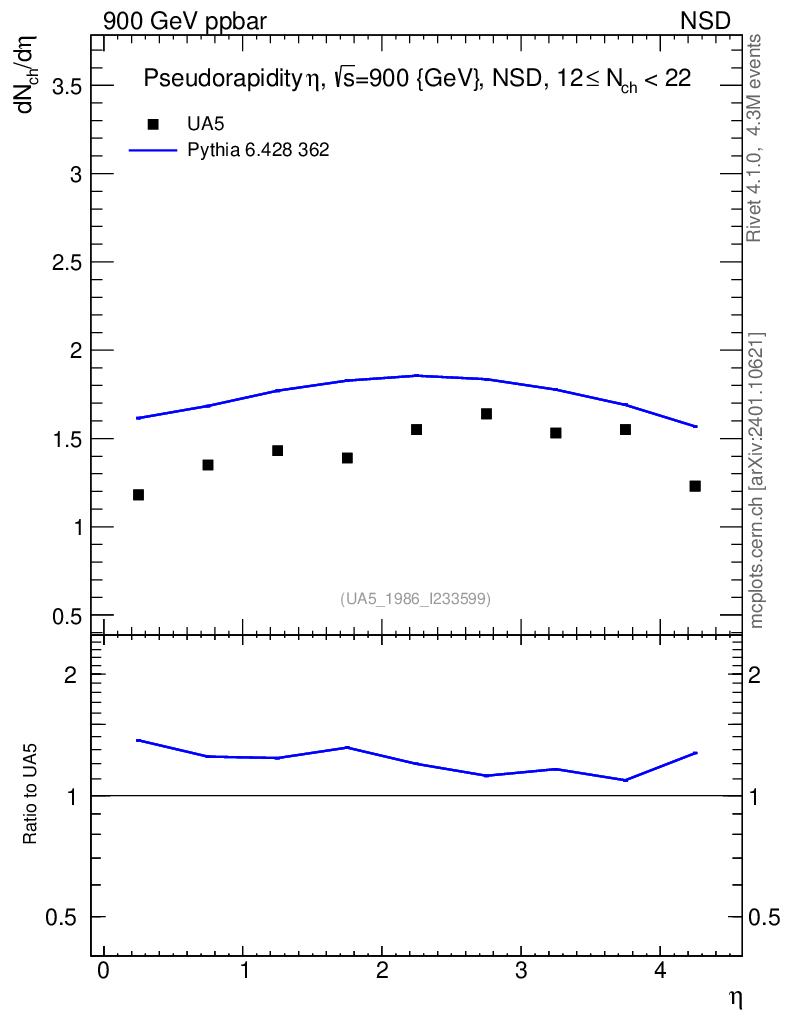 Lines: data, pythia6 6.428 362 |