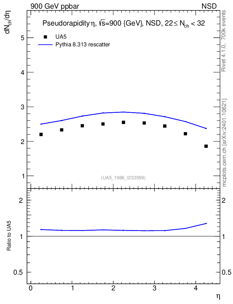 Lines: data, pythia8 8.313 rescatter |