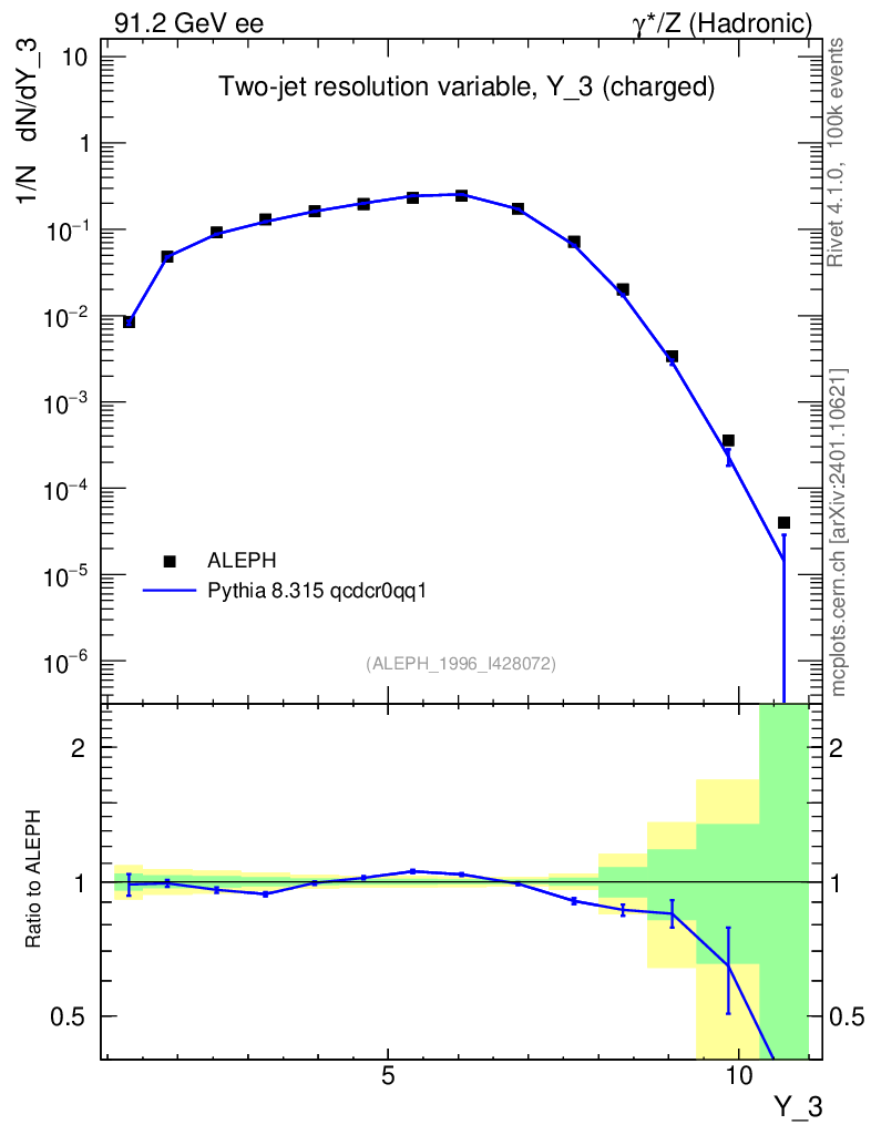 Lines: data, pythia8 8.315 qcdcr0qq1 |