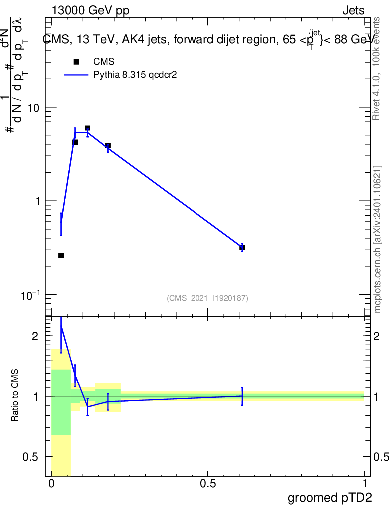 Lines: data, pythia8 8.315 qcdcr2 |