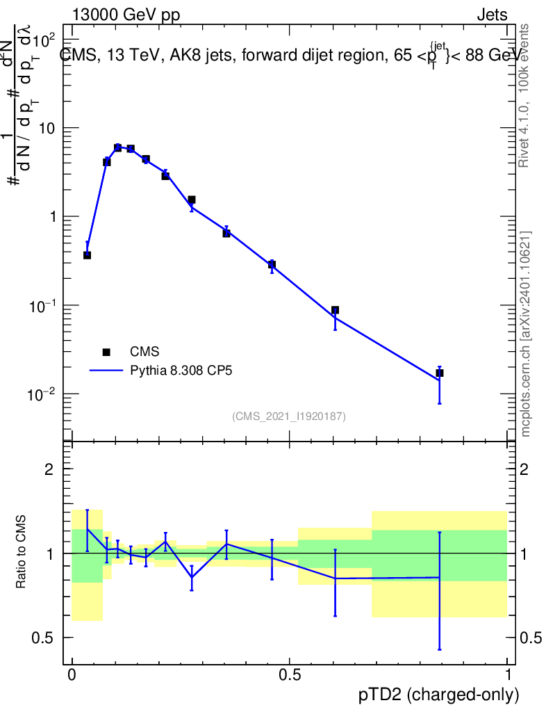 Lines: data, pythia8 8.308 CP5 |