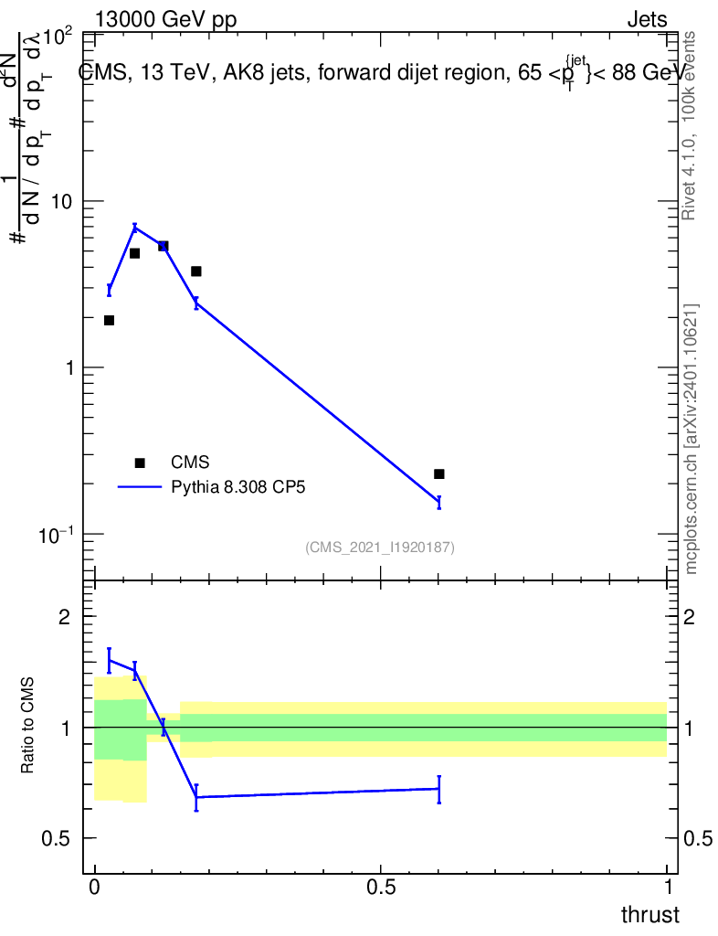 Lines: data, pythia8 8.308 CP5 |