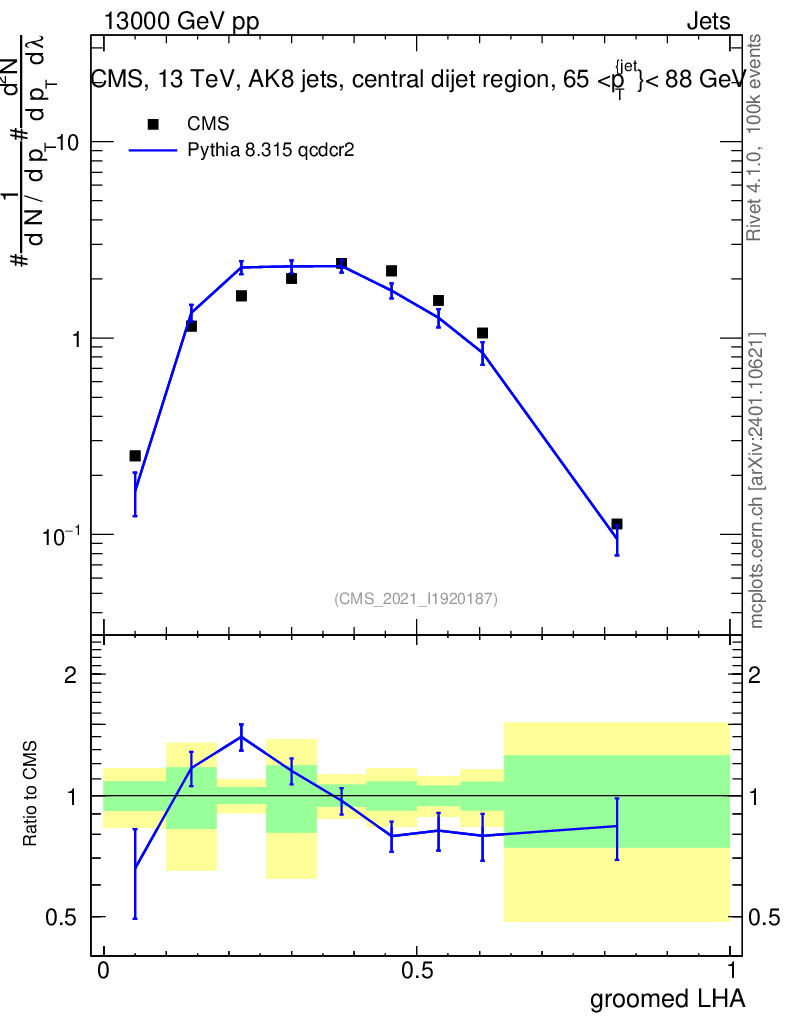 Lines: data, pythia8 8.315 qcdcr2 |
