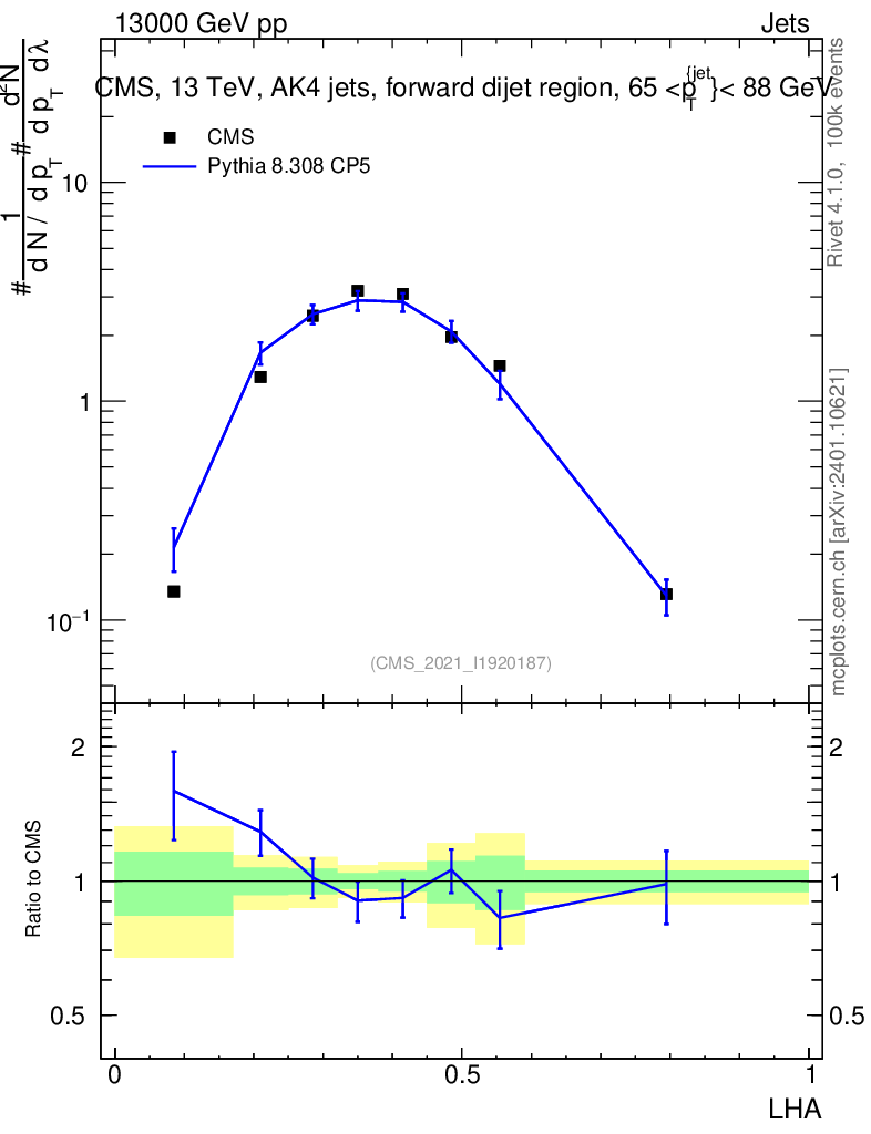 Lines: data, pythia8 8.308 CP5 |