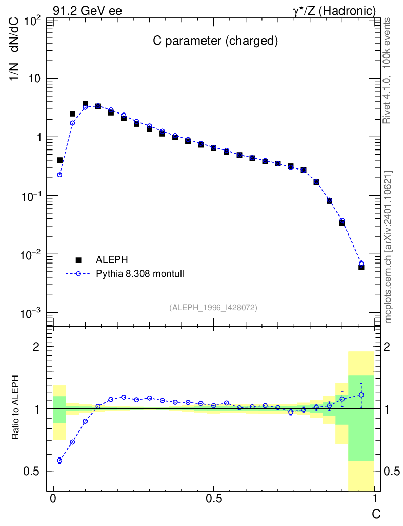 Plot of C in 91.2 GeV ee collisions