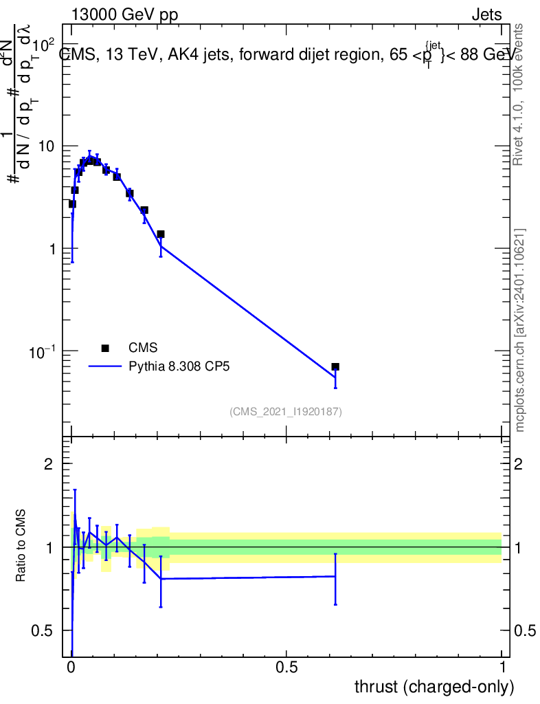 Lines: data, pythia8 8.308 CP5 |