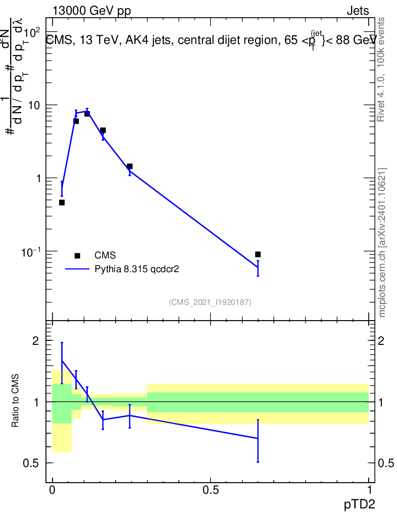 Lines: data, pythia8 8.315 qcdcr2 |