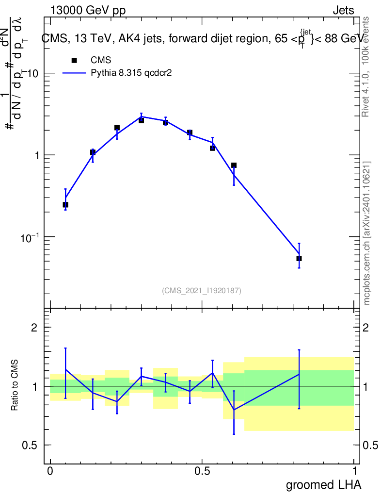 Lines: data, pythia8 8.315 qcdcr2 |