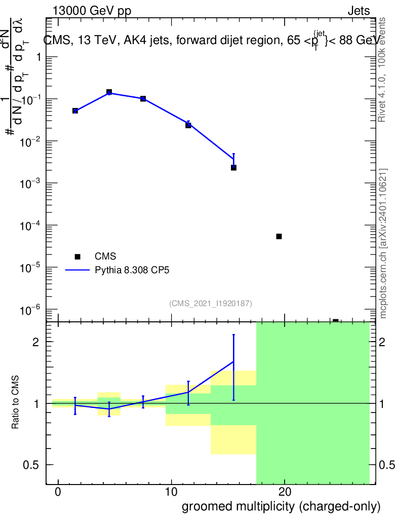 Lines: data, pythia8 8.308 CP5 |