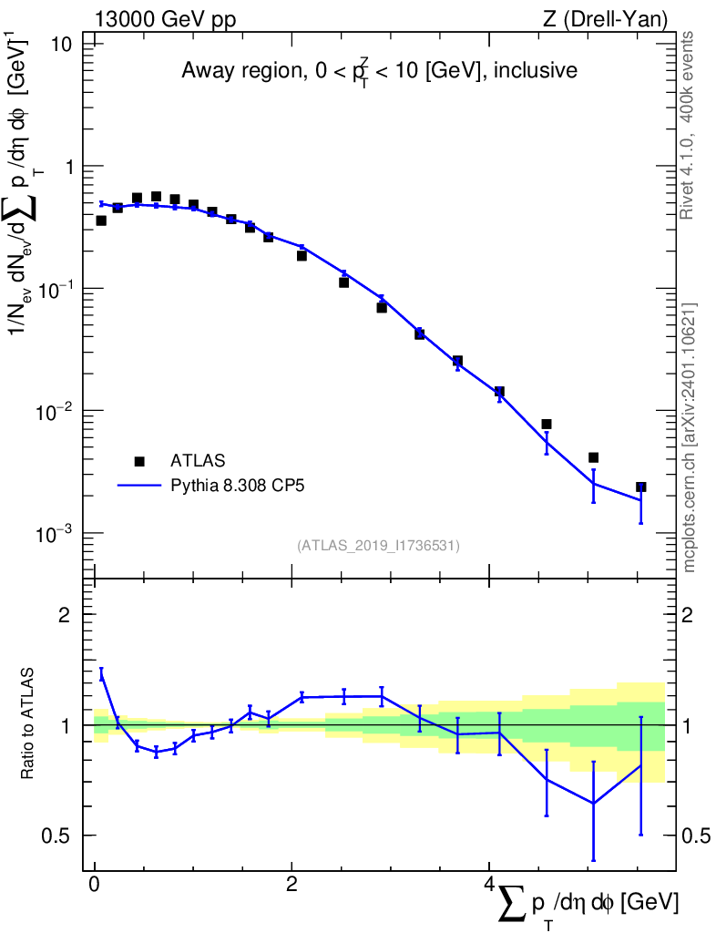 Lines: data, pythia8 8.308 CP5 |