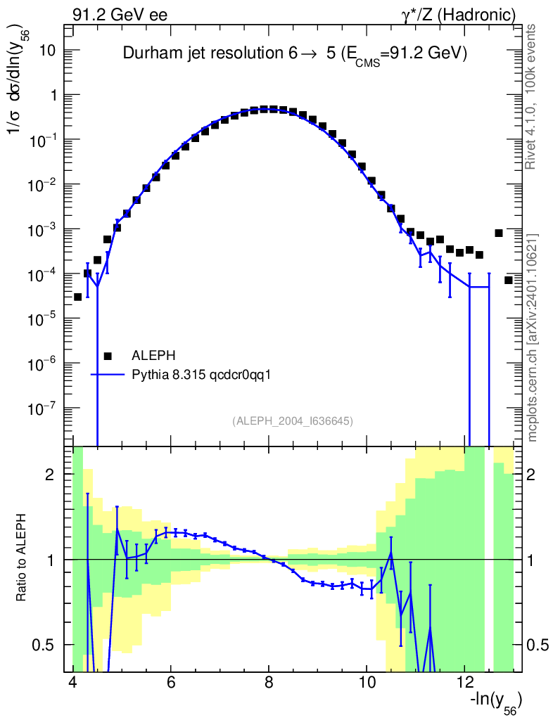 Lines: data, pythia8 8.315 qcdcr0qq1 |