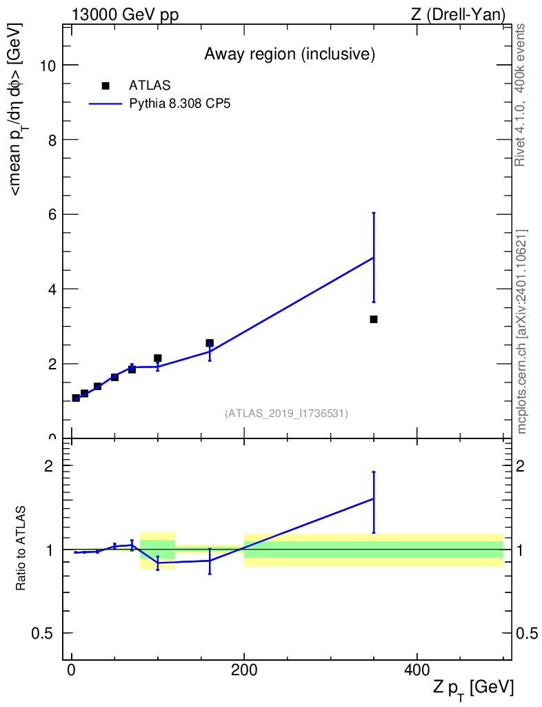 Lines: data, pythia8 8.308 CP5 |