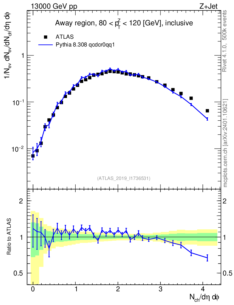 Lines: data, pythia8 8.308 qcdcr0qq1 |