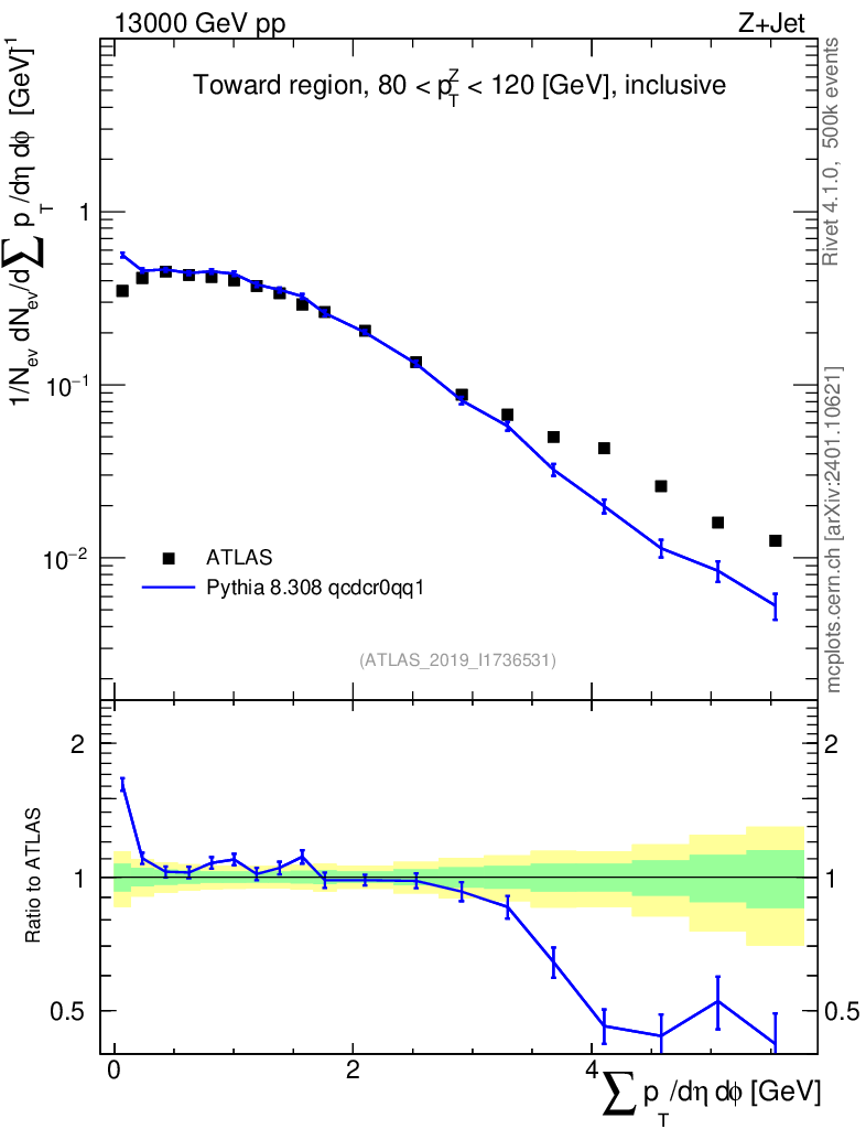 Lines: data, pythia8 8.308 qcdcr0qq1 |