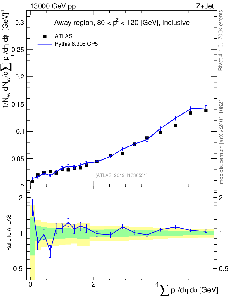 Lines: data, pythia8 8.308 CP5 |