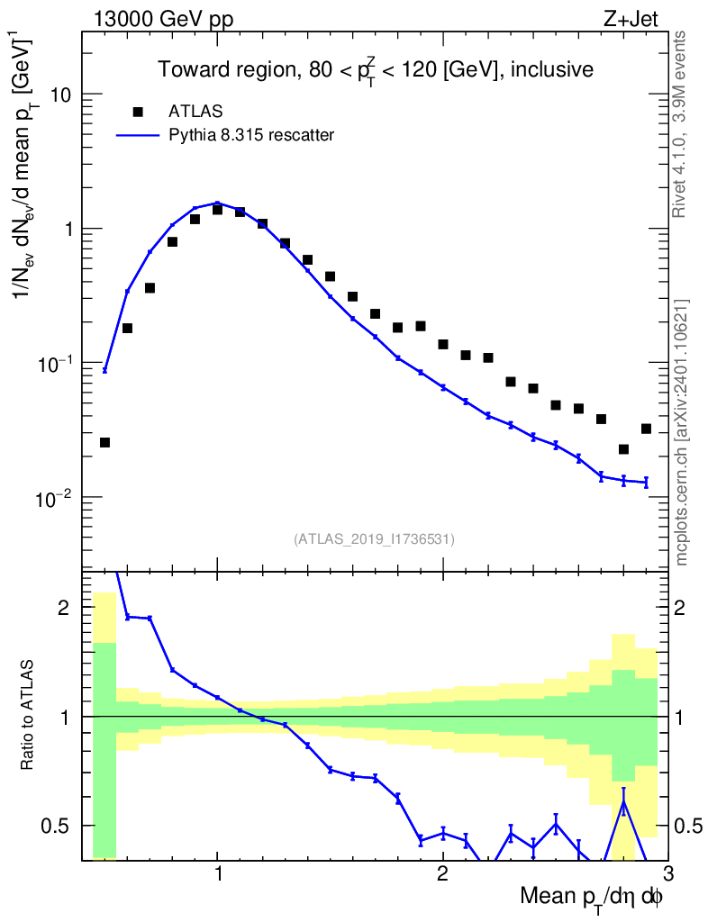 Lines: data, pythia8 8.315 rescatter |