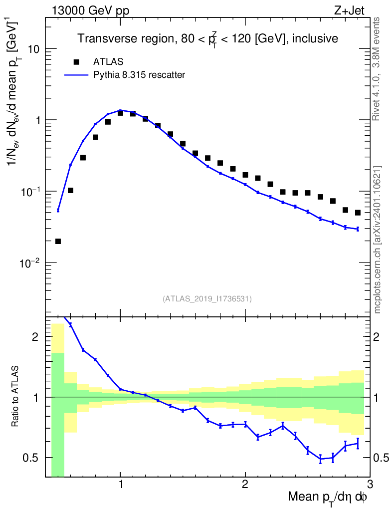 Lines: data, pythia8 8.315 rescatter |