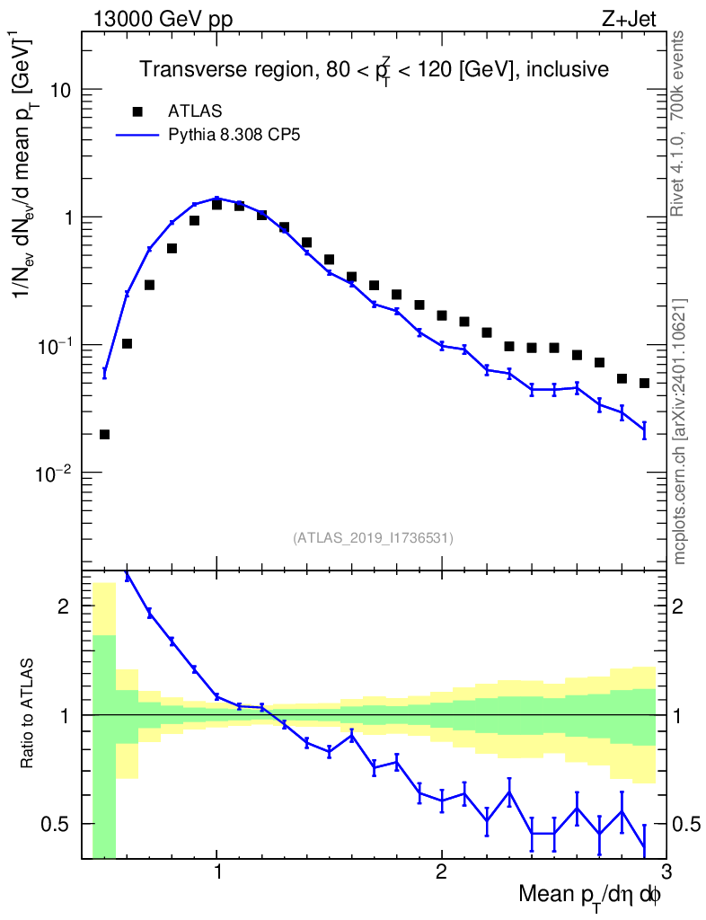 Lines: data, pythia8 8.308 CP5 |
