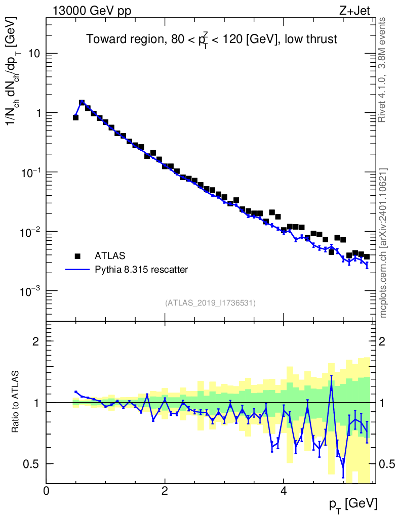 Lines: data, pythia8 8.315 rescatter |