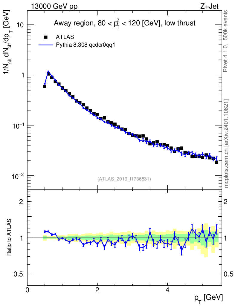 Lines: data, pythia8 8.308 qcdcr0qq1 |