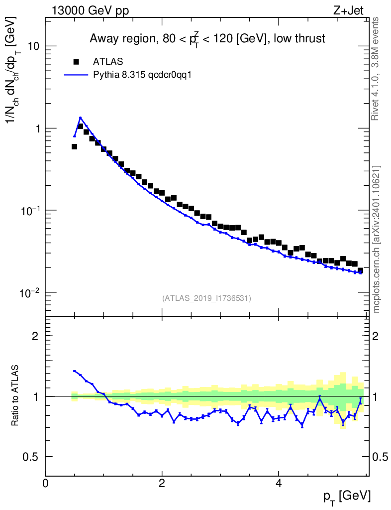 Lines: data, pythia8 8.315 qcdcr0qq1 |