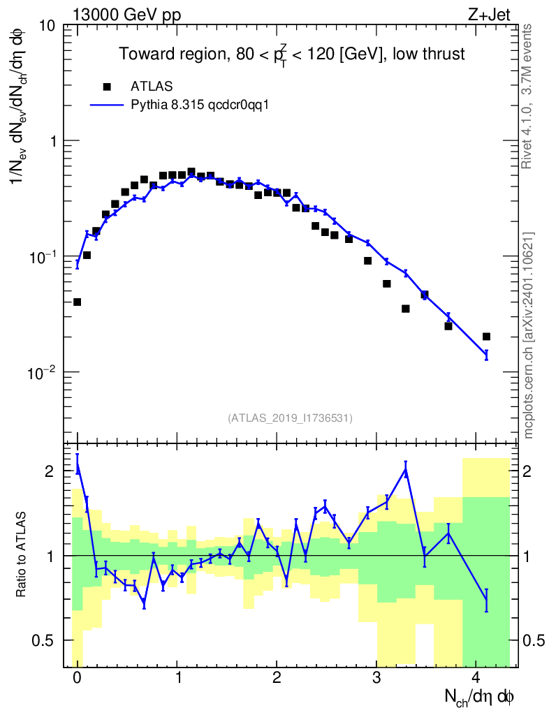 Lines: data, pythia8 8.315 qcdcr0qq1 |