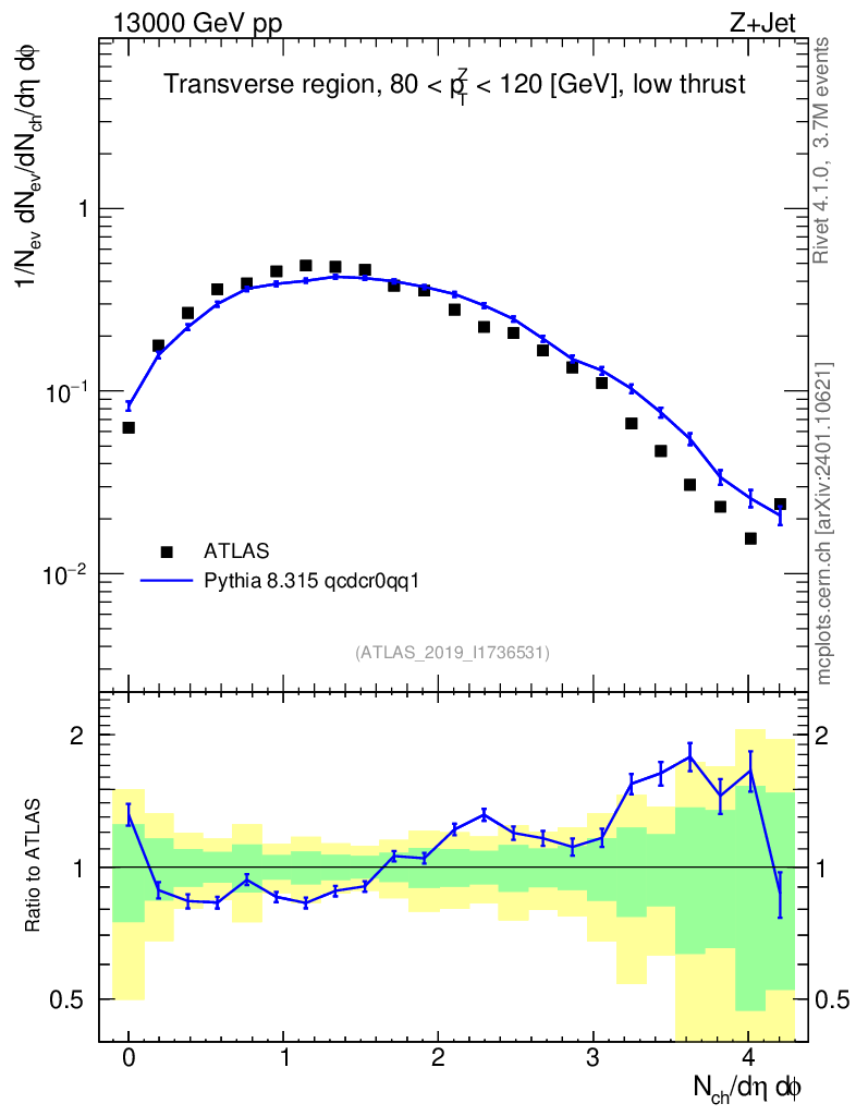 Lines: data, pythia8 8.315 qcdcr0qq1 |