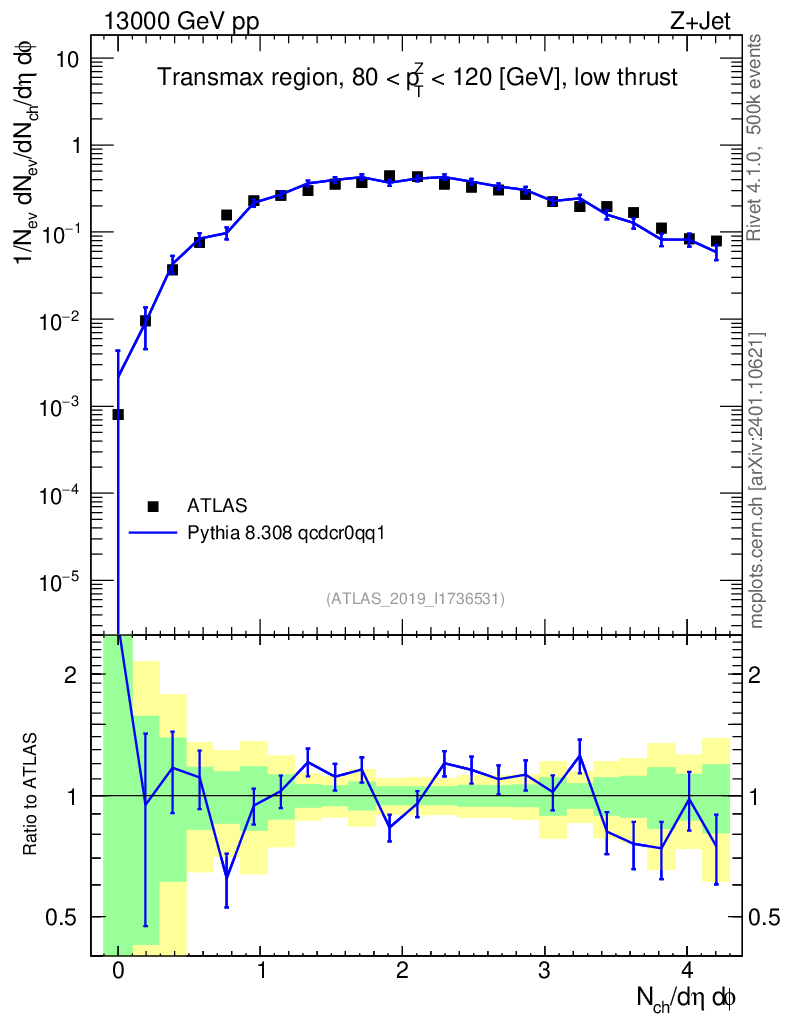 Lines: data, pythia8 8.308 qcdcr0qq1 |