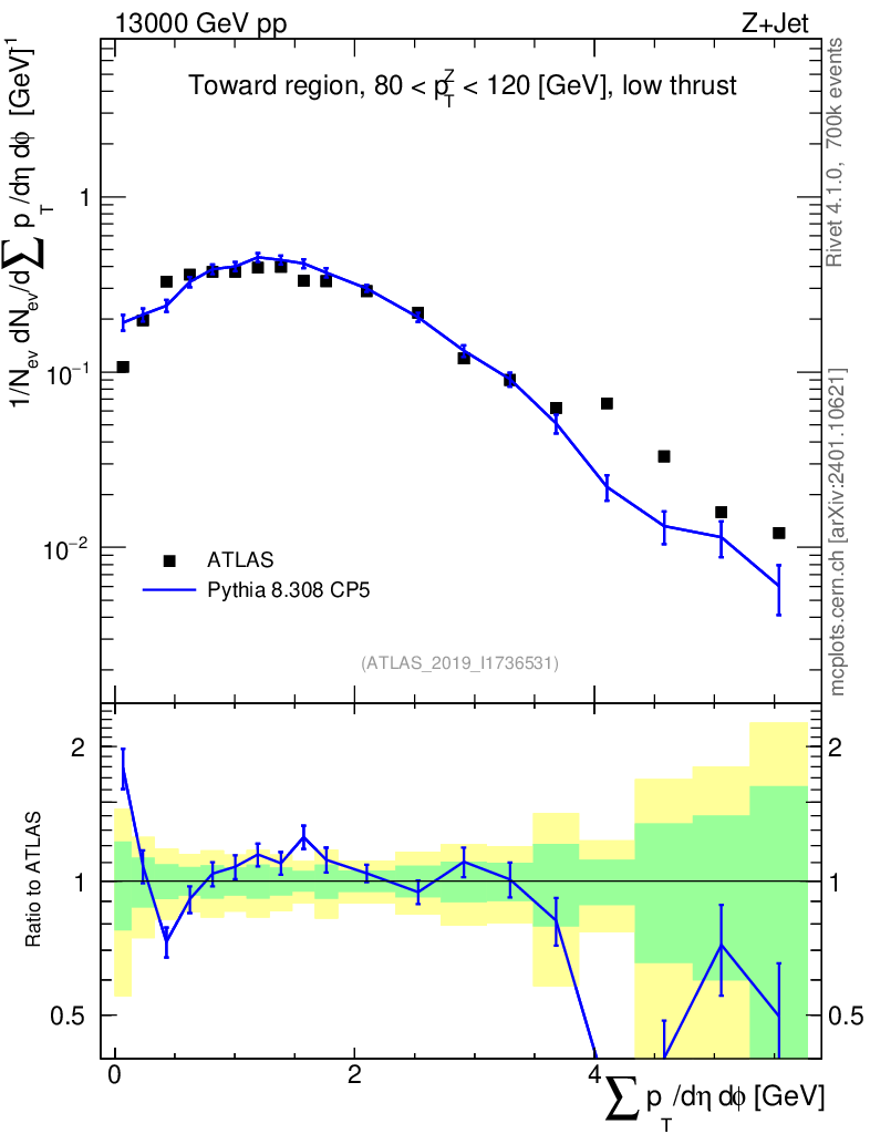 Lines: data, pythia8 8.308 CP5 |