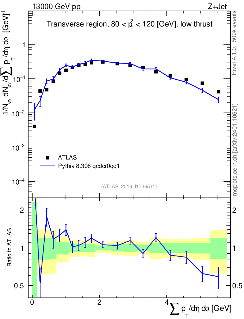 Lines: data, pythia8 8.308 qcdcr0qq1 |