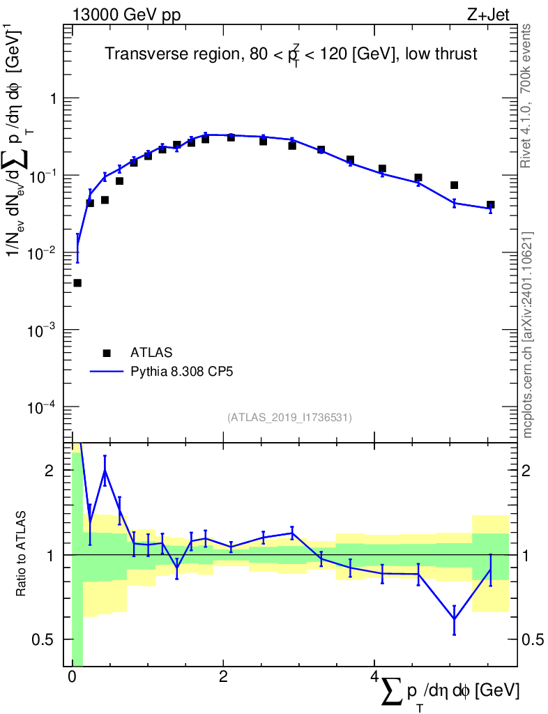 Lines: data, pythia8 8.308 CP5 |